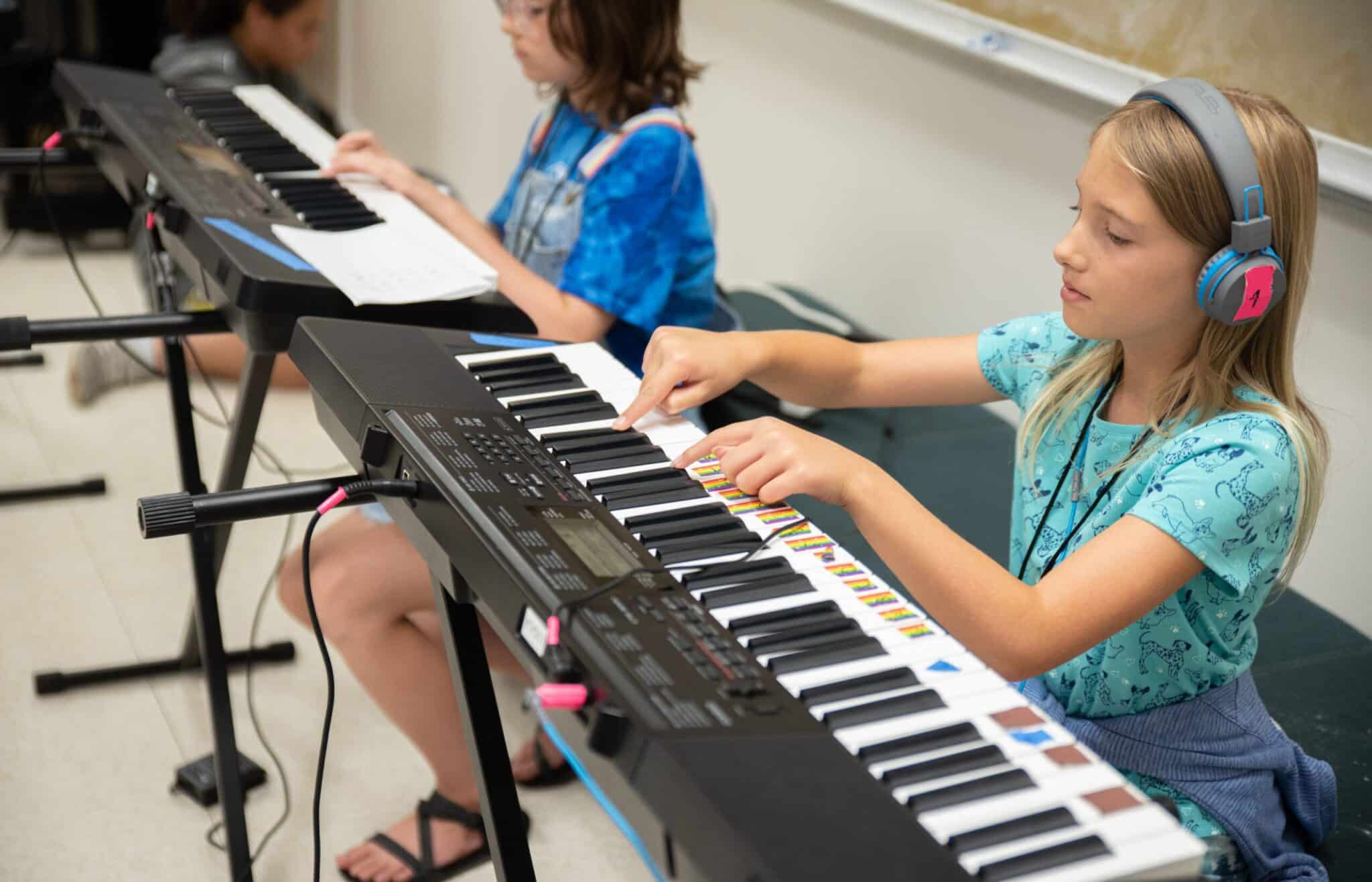 Youth campers of all skill levels learn an instrument (guitar, bass, drums, keyboard or vocals), form a band, write a song and perform their original song on stage at an end-of-camp showcase for friends, family and fans.