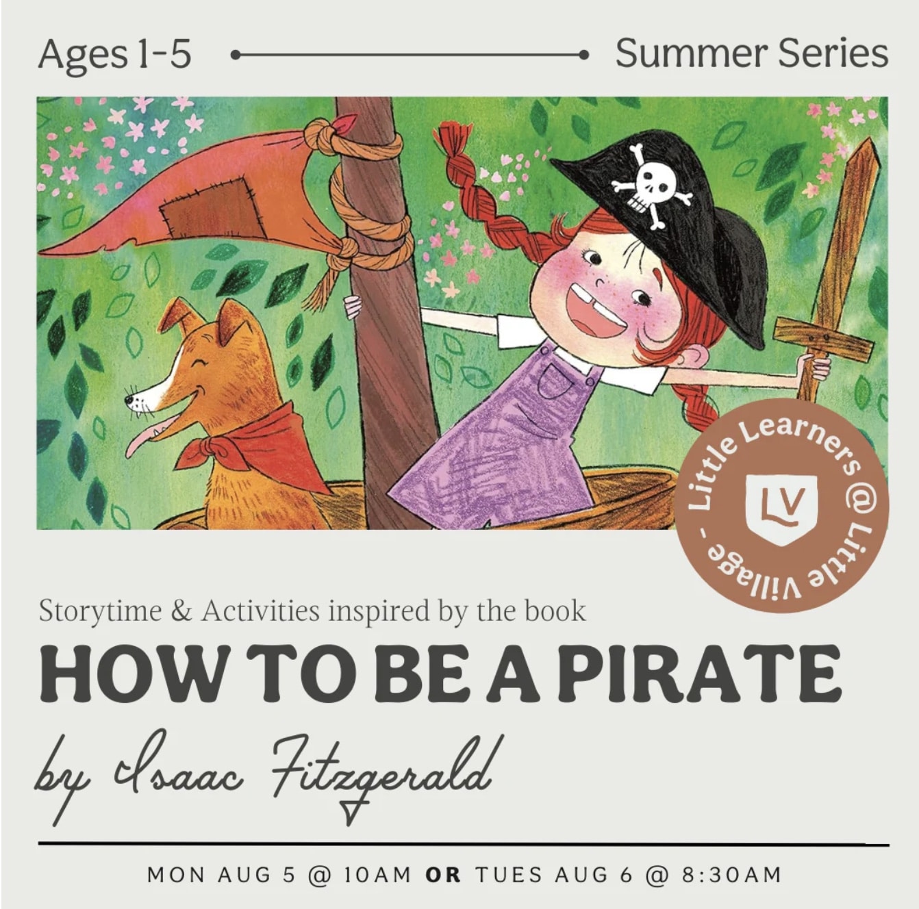 This week’s Little Learners class is based on the book How To Be A Pirate by Isaac Fitzgerald. 📚 Each child will enjoy this 90-minute session inspired by themes throughout the book, and receive a copy of the book to take home.
